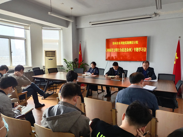 为进一步培育职工践行社会主义核心价值观,弘扬中华民族传统美德,不断提升干部职工文明素养,结合精神文明工作计划,4月9日下午,市水利建筑勘测设计院组织学习《河南省文明行为条例》。