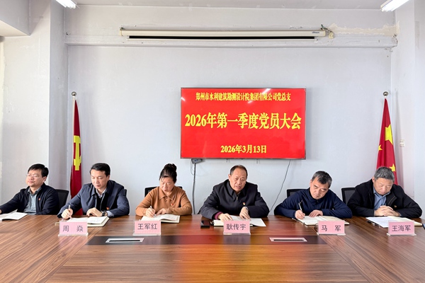 为总结第一季度工作成效,进一步凝聚党员力量、强化责任担当,3月13日,市水利建筑勘测设计院集团有限公司党总支召开2026年第一季度党员大会。公司党总支书记、董事长耿传宇主持会议,全体党员参加。 会议首先学习了《习近平关于树立和践行正确政绩观论述摘编》第一章《政绩观问题是一个根本问题》,强调要深刻把握正确政绩观的核心要义和实践要求,切实把学习成果转化为推动水利设计工作的实际行动。