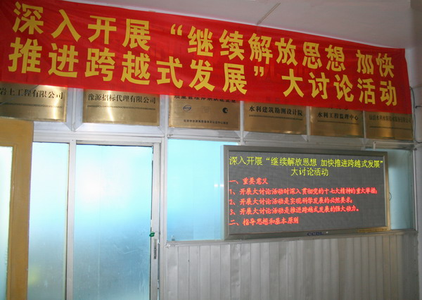 为深入学习宣传贯彻党的十七大精神,落实市委九届九次全会要求,进一步解放思想、改革开放、科学发展,在新的历史起点上推进郑州新一轮跨越式发展,根据市委关于在全市开展“继续解放思想 加快推进跨越式发展”大讨论活动要求和郑州市水利局“继续解放思想 加快推进跨越式发展” 大讨论活动实施方案,我院党支部决定从2008年8月初开始,集中三个月时间,在全院开展“继续解放思想 加快推进跨越式发展” 大讨论活动。