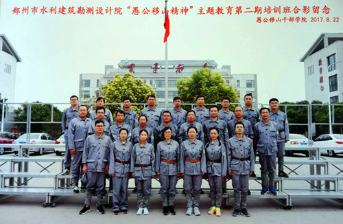 为深入贯彻十八届六中全会精神,全面落实从严治党要求,进一步增强广大党员的党性观念和“四个意识”,努力培养和锻造一支信念坚定、对党忠诚、敢于担当的党员队伍,按照《中共郑州市水务局直属机关委员会“万名党员进党校,锤炼党性铸忠诚”培训方案》以及“两学一做”教育活动常态化制度化要求,我院党支部组织全体党员于8月14日至16日、21日至23日分两批到济源愚公移山精神干部学院集中培训学习。 在三天的培训学习中,大家认真聆听了愚公移山精神专题讲课,参观了济源市廉政教育基地,小浪底爱国主义教育基地,开展了王屋山搬石体验,朱德走太行小道等体验教学,并在朱德雕像举行了授旗仪式,面对党旗,重温入党誓词。