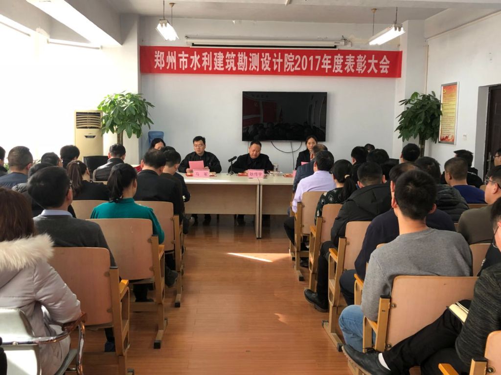 会议首先对获得我院2017年度先进集体,优秀公司,先进工作者,优秀获奖项目、优秀项目负责人等进行了表彰和奖励。 耿院长围绕郑州市贾鲁河综合治理工程,牛口峪引黄供水工程、河长制“一河一策”编制等我院承揽的郑州水务重点工程,全面回顾了过去一年的工作。认真总结了在全面从严治党、市场经营和服务郑州水务重点工程建设管理等方面取得的成绩。同时也指出了存在的问题和不足,并提出了2018年的工作思路和要求。