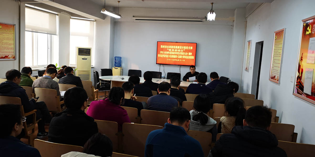 1月11日“党员活动日”,我院党支部组织开展集中学习暨春节廉政谈话会议。 院党支部纪检委员马军带领大家认真学习了习近平总书记在《告台湾同胞书》发表40周年纪念会上的重要讲话精神、李克强总理在2018年度国家科学技术奖励大会上的讲话,并传达落实《郑州市水务局以案促改制度化常态化推进会暨春节廉政谈话会》的安排部署。 会议要求,全体党员干部要认真学习领会会议内容,结合工作实际,凝心聚力,开拓创新,不断增加业务工作创新成果;各党小组长切实担负起责任,引导每位党员坚持红线意识,带头执行各项纪律规定,廉洁过节,确保春节风清气正。  |