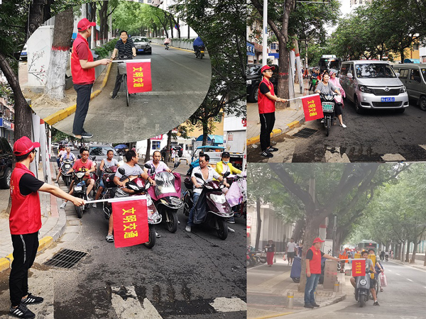 志愿者们身身穿红马甲,头戴小红帽,在颖河路文化宫路口维护交通秩序,引导市民遵守交通规则,对非机动车逆向行驶、闯红灯、越线行驶以及行人闯红灯等交通违法行为进行劝导和纠正,努力创建文明交通的良好局面。 全体志愿者发挥模范带头作用,争做文明交通的倡导者和遵守者,积极传递“文明交通你我同行”的社会正能量,以实际行动助力“迎民族盛会庆七十华诞”城市环境综合整治提升工作。