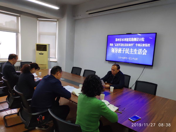 按照水利局直属机关党委和国资委的工作部署及《设计院围绕孟连军违纪违法案件开展专项以案促改活动方案》的要求,11月27日,我院领导班子召开了以案促改专题民主生活会。会议由院党总支书记、院长耿传宇主持。郑州市水利局党组成员、副局长刘德坡同志到会指导,院班子成员参加。