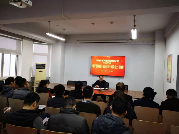 面临2020年的新机遇、新挑战,耿院长提出三点要求:一是要认真学习领会全会精神,勤学善思、学深悟透、弄懂弄通;二是要认真思考如何完善设计院在高质量发展、治理能力和治理体系、水利事业发展等方面存在的短板和需要提高之处;三是鼓励干部职工结合工程实际,不断提高综合业务能力,多出专业论著、精品力作,多向《水利郑州》投稿,多在核心期刊上发表专业论文。