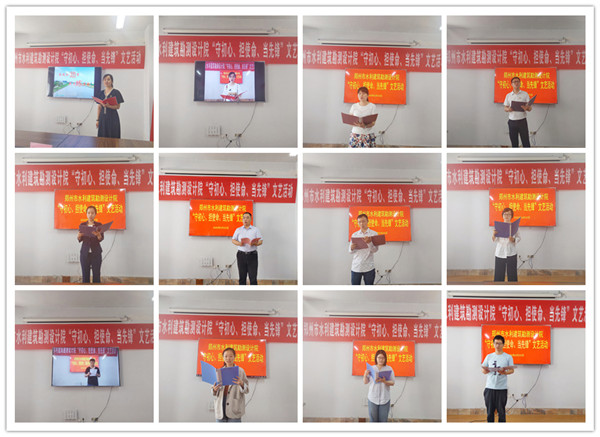 为庆祝中国共产党建党99周年,引导全院党员干部职工更好地坚定主心骨、汇聚正能量、振奋精气神,按照郑州市水利局直属机关党委《关于开展“守初心、担使命、当先锋”文艺作品展播活动的通知》精神,5月22日下午,市水利建筑勘测设计院组织开展了“守初心 担使命 当先锋”文艺活动。