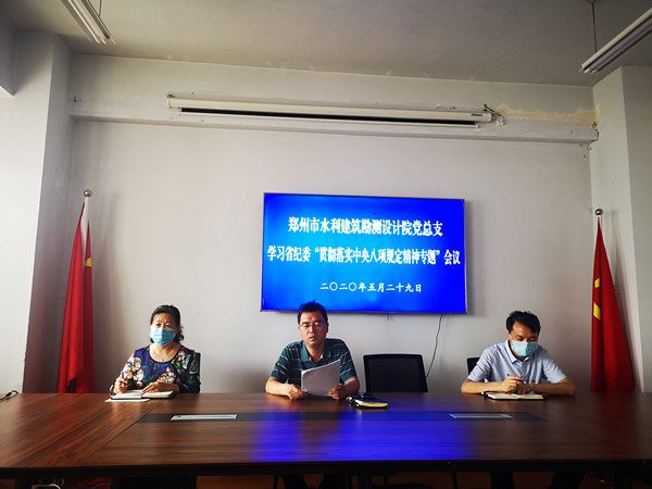为进一步推动中央八项规定精神落实落细,根据市纪委监委驻水利局纪检监察组通知要求,5月29日,市水利建筑勘测设计院党总支开展了“贯彻落实中央八项规定精神”专题党风廉政教育学习。会议由院党总支委员、副院长马军主持,全体党员参加。