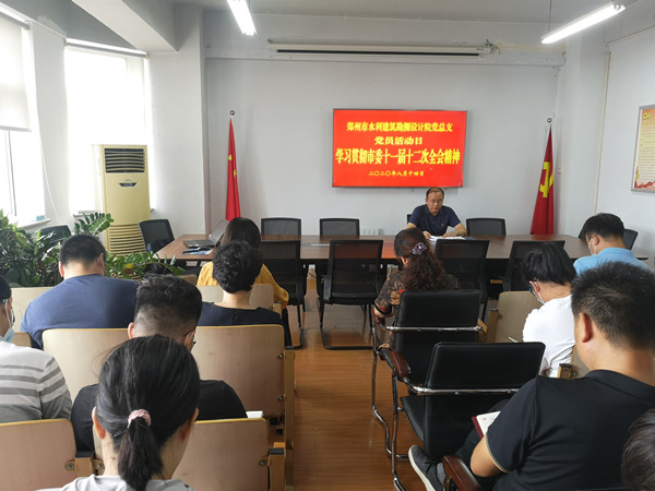 8月14日“党员活动日”,市水利建筑勘测设计院党总支组织开展学习郑州市委十一届十二次全会精神专题活动。院党总支委员李新伟主持,全体党员参加。