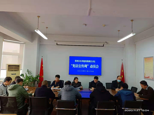 11月27日下午,为弘扬宪法精神,维护宪法权威,在国家宪法日到来之际,市水利建筑勘测设计院召开“宪法宣传周”活动动员会。会议由院党总支委员、工会主席王军红主持,院属各部门、所、下属公司负责人参加。