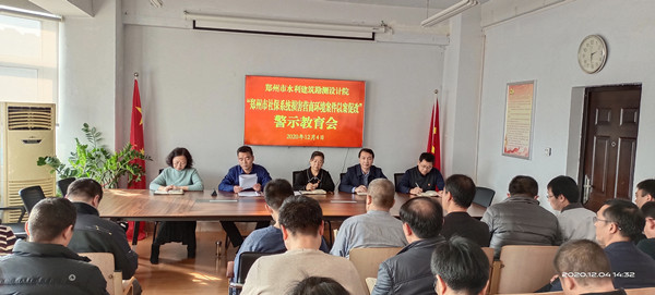 12月4日下午,郑州市水利建筑勘测设计院围绕郑州市社保系统损害营商环境案件开展以案促改警示教育会,全体职工参加。院党总支委员、副院长马军主持会议。