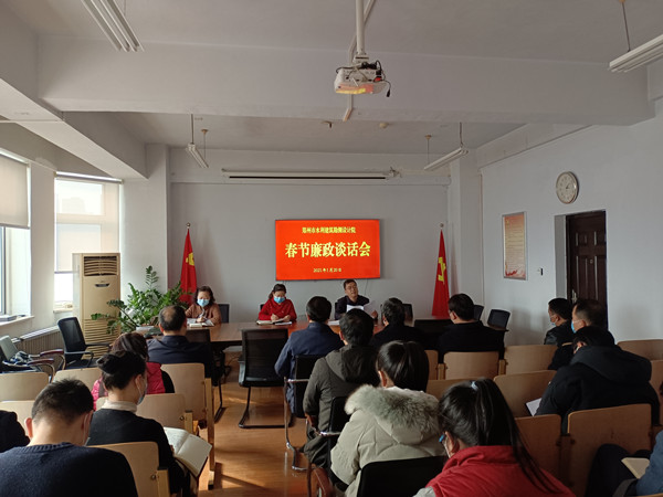 为切实做好党风廉政建设,落实全面从严治党,营造春节风清气正的氛围,1月20日下午,市水利建筑勘测设计院党总支召开2021年春节廉政谈话会,院党总支委员、副院长马军主持。