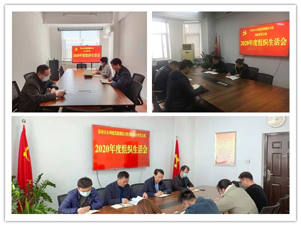 为深入学习贯彻习近平新时代中国特色社会主义思想,以实际行动巩固深化“不忘初心、牢记使命”主题教育成果,根据市水利局直属机关党委通知要求,3月18日-22日,设计院所属党支部分别召开2020年度组织生活会,院党总支书记、委员以普通党员的身份参加所在党支部组织生活会,并按照总支委员分工对所分管的党支部进行指导。