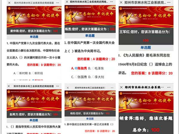 为庆祝中国共产党成立100周年,深入学习贯彻习近平新时代中国特色社会主义思想,贯彻落实党的十九届五中全会精神,郑州市农林水利工会组织开展了党史知识网络竞赛活动,市水利建筑勘测设计院积极响应,鼓励80余名党员干部职工踊跃参加竞赛,感受党的光辉历程、传颂英雄先烈的感人事迹。