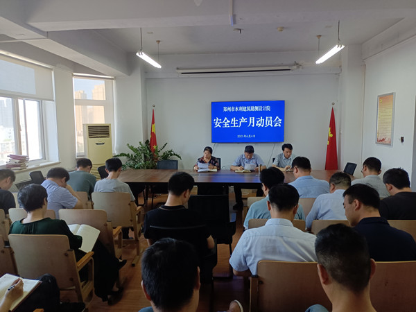 为认真落实市委市政府、水利局关于安全生产决策部署,推动全院职工树牢安全发展理念,6月4日上午,市水利建筑勘测设计院召开“安全生产月”动员会。院党总支委员、工会主席王军红主持、中层以上领导干部、各部门安全员参加。