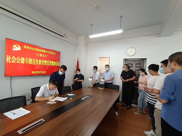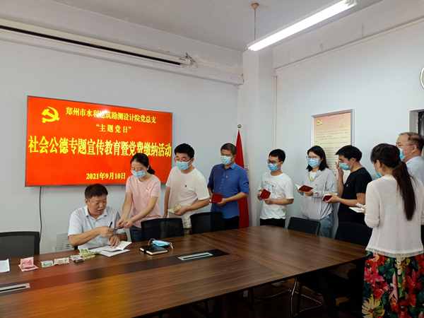 为进一步强化党员党性观念和宗旨意识,提高党员道德修养与文明素质,9月10日“主题党日”,市水利建筑勘测设计院党总支开展社会公德专题宣传教育暨党费缴纳活动。院党总支委员、副院长王海军主持活动。