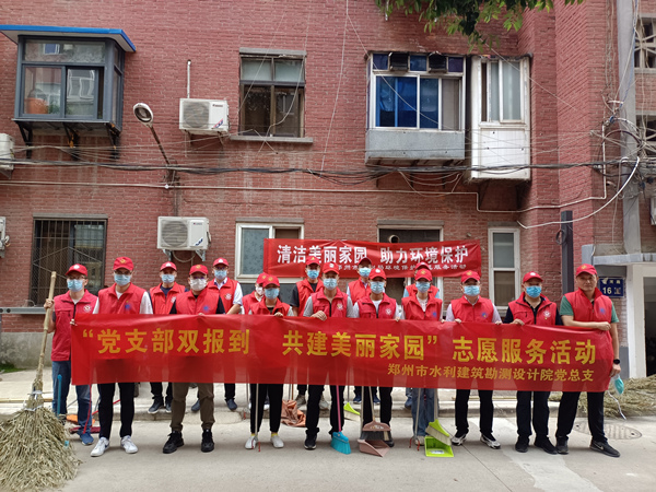 为助力居民营造整洁卫生、和谐温馨的居住环境,提高居民身边环境卫生质量,结合党支部“双报到”工作,在水利局直属机关党委指导下,9月17日上午,市水利建筑勘测设计院组织开展了“党支部双报到 共建美丽家园”主题志愿服务活动。