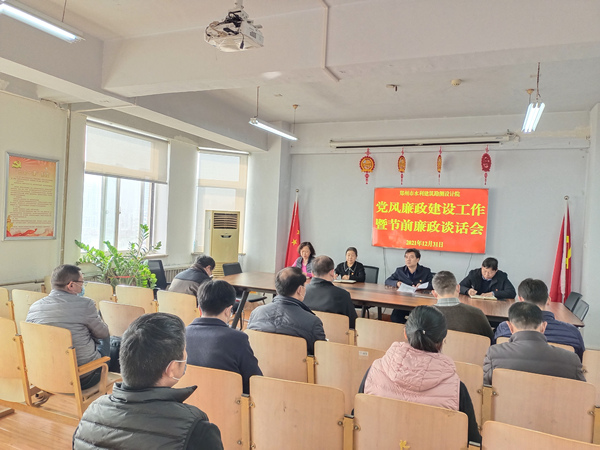 12月31日,市水利建筑勘测设计院召开党风廉政建设工作暨节前廉政谈话会议,按照疫情防控要求,院中层正职及以上人员、下属公司负责人和部分党员代表参加会议。