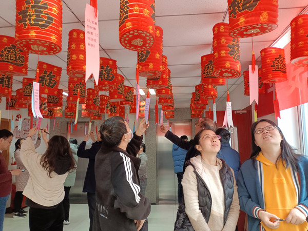 在挂满了大红灯笼的办公区域,参与活动的职工穿梭于一条条五彩缤纷的谜面之中,或苦思冥想,或两两讨论,在互动中体味传统文化的博大精深,也体验到文字游戏的睿智和快乐。此次谜语不仅有传统的猜字谜、猜人名,还增加了党史、冬奥会、天文、地理、新闻、文学、教育、疫情防控等方面的知识,把中国传统节日文化与新时代文化充分融合,更有利于传统文化的弘扬与传承。
