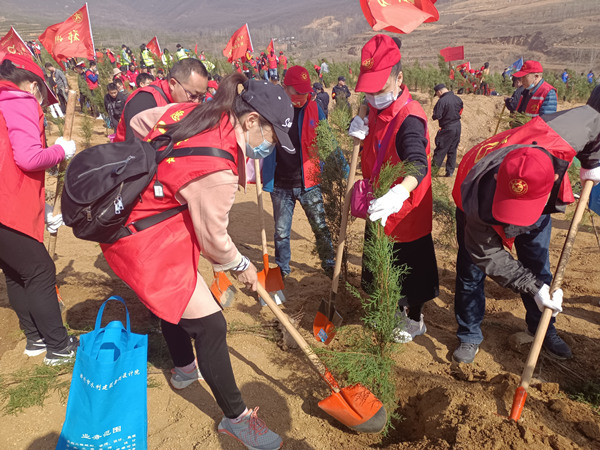 在登封石道乡陈家门村郑州市全民义务植树基地现场,院党总支委员、工会主席王军红、院长助理白清秀带领志愿者们,脚踩泥土,头顶骄阳,发扬不怕苦、不怕累的精神,分工合作,默契配合,有的挥锹铲土、有的扶树压土、有的提水浇灌,个个热情高涨、干劲十足,放眼望去到处是一片热火朝天的劳动景象。经过大家的共同奋战努力,一棵棵新栽种的树苗一排排、一列列,亭亭玉立,迎风展叶,在明媚的春光中展现勃勃生机。