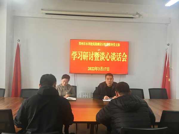 根据组织生活会要求和开展程序,3月15日至17日,市水利建筑勘测设计院所属各党支部开展了学习研讨与谈心谈话活动。院党总支委员以普通党员身份参加。