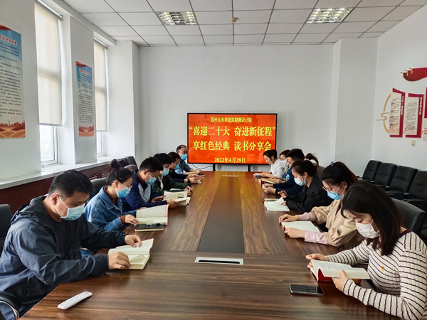 为提升职工精神文化生活,深化学习型企业建设,营造爱读书、读好书、善读书的浓厚氛围,4月29日,市水利建筑勘测设计院举办“喜迎二十大 奋进新征程 ”享红色经典读书分享会。院党总支委员、院长助理董永立主持、院党总支委员、工会主席王军红参加分享会。