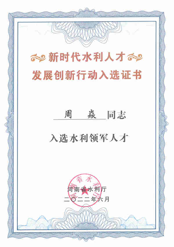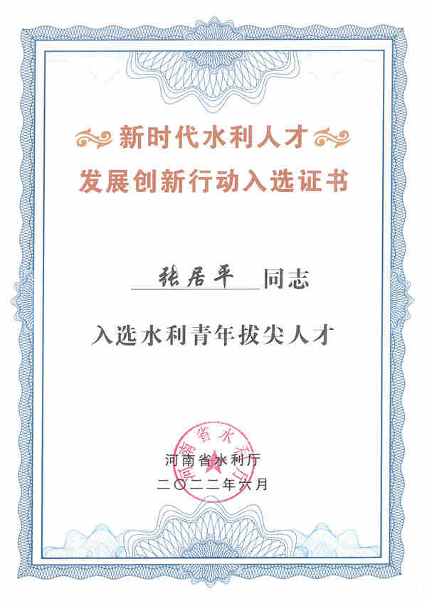 河南省水利厅印发了《关于命名第一批省水利领军人才、省水利青年拔尖人才的通知》,我院副院长、正高级工程师周焱入选水利领军人才,规划设计所所长、高级工程师张居平入选水利青年拔尖人才。