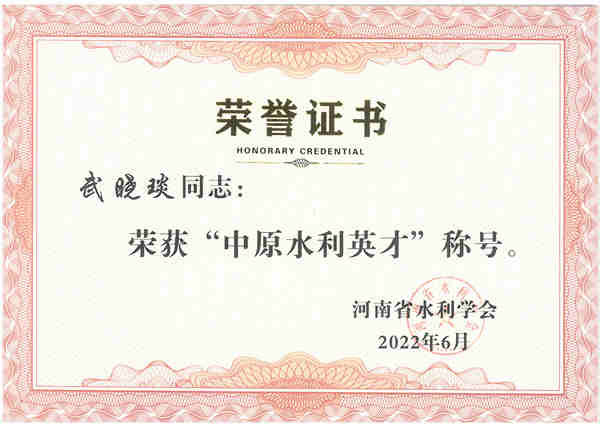 水利科技所所长、高级工程师武晓琰、水资源水环境所所长、李晓光同时被河南省水利学会评为中原水利英才。
