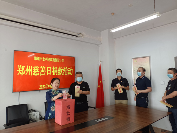 10月16日是第十五个“郑州慈善日”。为认真贯彻落实《慈善法》,向弱势群体献上一份爱心,根据郑州市委办公厅市政府办公厅关于转发《第十五个郑州慈善日活动方案》的通知精神,9月23日下午,市水利建筑勘测设计院开展了“郑州慈善日”捐款活动。