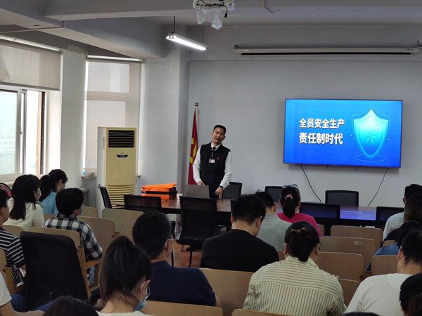 来自河南省消防协会义务消防科普宣传队的赵超磊教员紧扣培训主题,从新《安全生产法》、常见火灾隐患、规范使用各类电器、发现火灾紧急应对方法、火场自救逃生、消防器材使用演示以及较大火灾事故分析等方面,为全体职工上了一场精彩的理论与实操相结合的知识讲座。