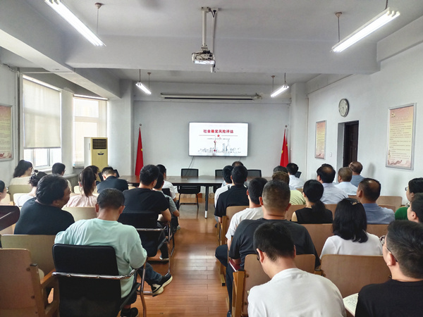 工会主席王军红首先传达了《郑州市水利局社会稳定风险评估学习宣传月活动方案》,对设计院相关工作进行了安排部署,并根据方案要求,领学了习近平法治思想及防范化解重大风险工作重要论述,以及“学习强国”学习平台推出的7月份“每日法治金句”、《习近平经济思想研究》期刊推出的文章《打好防范化解重大风险挑战的主动仗》。最后强调,各部门、所、公司要将社会稳定风险评估工作纳入重要议事日程,充分利用党支部党员大会、业务工作会组织专题学习、研究,将之与平安建设、法治建设、意识形态、安全生产、消防安全等各方面专项工作有机结合、统筹开展;各负责人要落实“一岗双责”,带头抓好学习宣传,带领职工重点学习、掌握稳评范围、方式、主要程序、基本要求及目的意义,切实增强职工学习主动性和工作责任感,提高防范化解重大风险的能力。