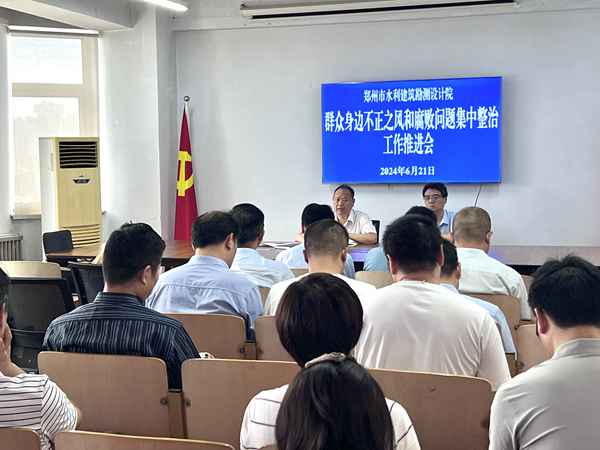 为进一步推进党纪学习教育及开展群众身边不正之风和腐败问题集中整治工作深入扎实开展,根据市水利局党组工作要求,6月21日,市水利建筑勘测设计院召开群众身边不正之风和腐败问题集中整治推进会。院党总支委员、副院长马军主持会议,院领导、中层领导干部及院属公司领导班子参加会议。