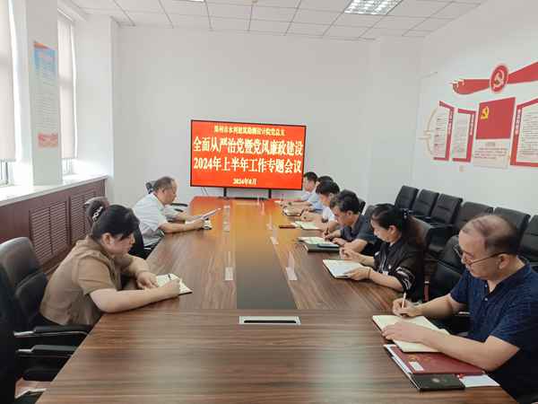 8月26日上午,市水利建筑勘测设计院党总支召开2024年上半年全面从严治党暨党风廉政建设工作专题会议。院党总支书记、院长耿传宇主持,市纪委监委驻水利局纪检监察组陈娟到会指导,设计院领导班子成员参加会议。