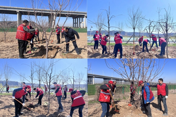 在植树现场,集团公司党总支领导班子带领专业技术骨干组成的志愿者服务队,挖坑培土、扶苗浇水,各个环节衔接有序。大家分工明确、配合默契,热情高涨、干劲十足,一株又一株充满希望的树苗在志愿者们的共同努力下稳固扎根,迎风挺立。这些树苗不仅承载着水利人对绿色未来的美好期许,也象征着水利人守护绿水蓝天的坚定决心。